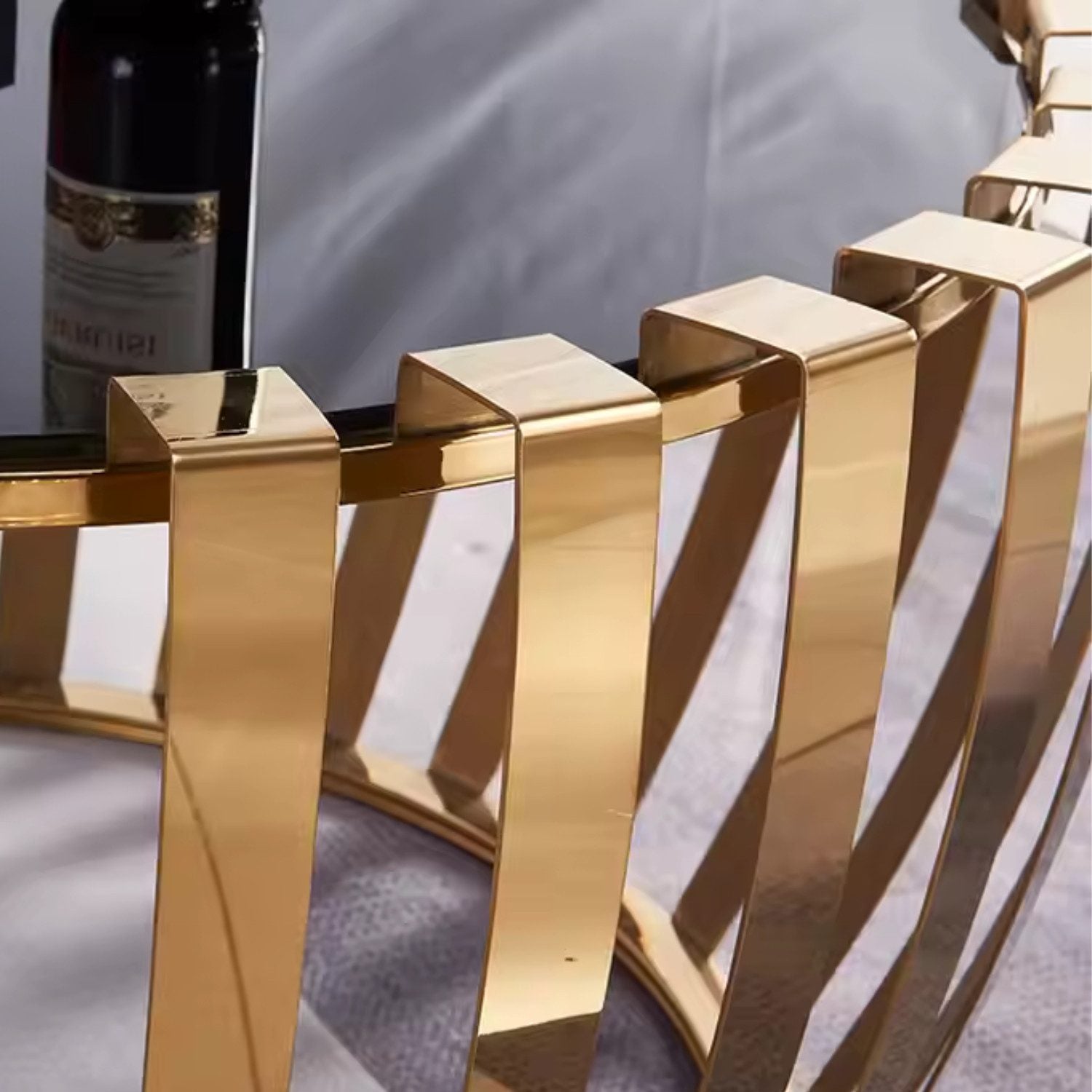 Um ein langlebiges und solides Design zu gewährleisten, ist dieser Couchtisch aus poliertem Edelstahl und gehärteter Glasplatte gefertigt, die Beine sind ihrerseits mit Edelstahl verziert und sorgen so für eine narrensichere Stabilität. Es ist mit einer äußerst widerstandsfähigen, kratz- und vergilbungsbeständigen UV-Lackierung überzogen, die dem alltäglichen Verschleiß standhält. Das sorgfältige Design dieses Produkts bietet ideale Widerstandsfähigkeit, immer willkommen, um gesellige Momente unter Freunden zu gewährleisten.