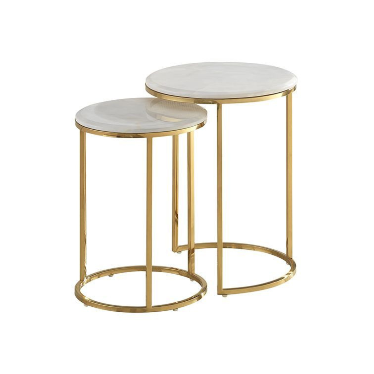 BOLOGNA Beistelltisch 2-tlg. – Marmoroptik & Gold | Ø45 x 58 cm