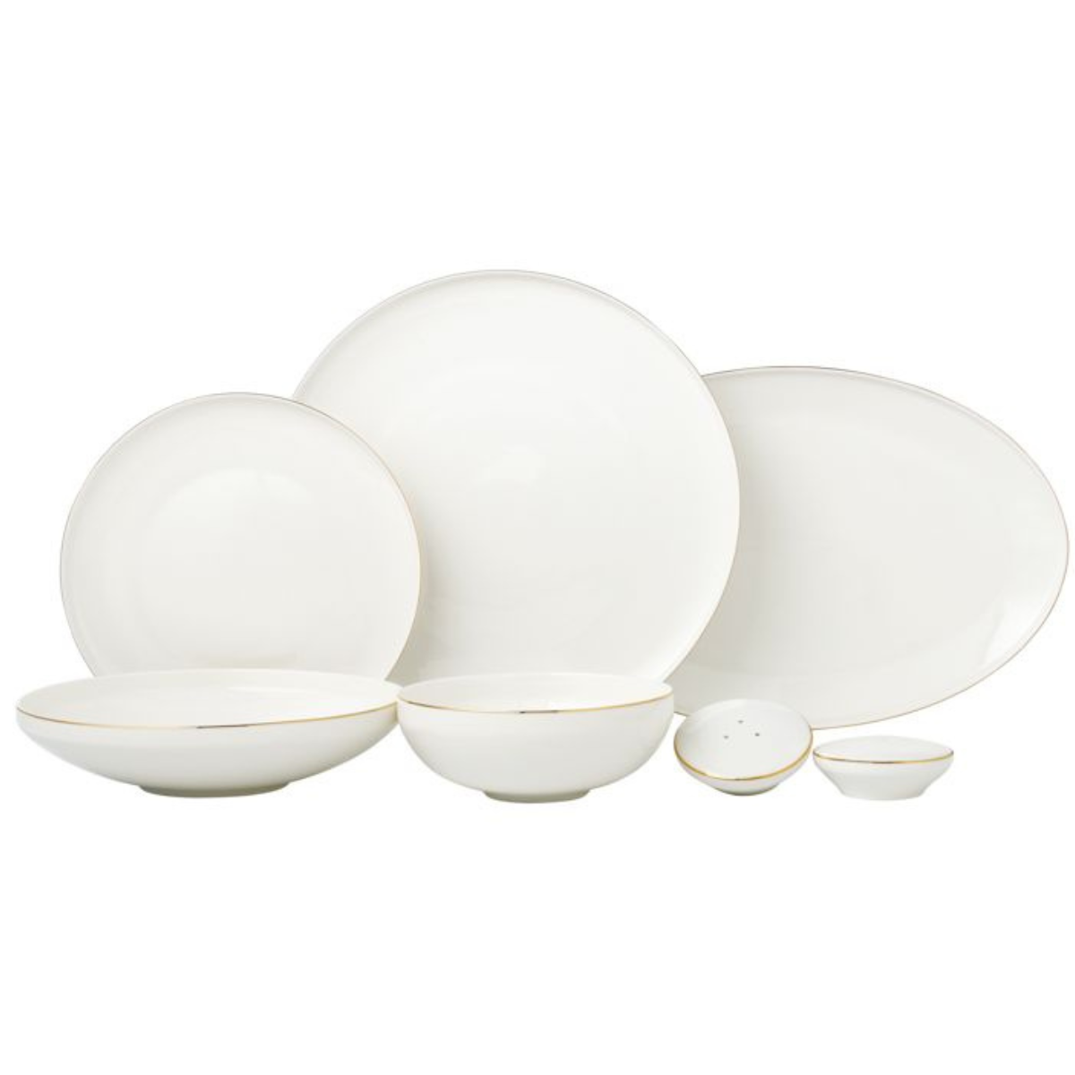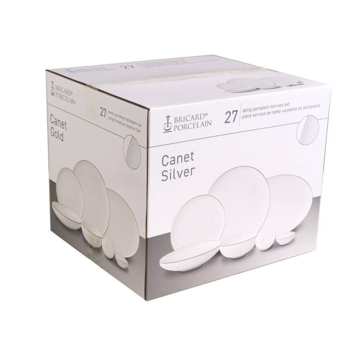 Das 27-teilige Geschirrset "Canet" von Bricard kombiniert klassische Eleganz mit funktionaler Alltagstauglichkeit. In schlichtem Weiß gehalten und wahlweise mit edlem Gold- oder Silberrand erhältlich, eignet sich dieses Set perfekt für stilvolle Dinner ebenso wie für den täglichen Gebrauch.