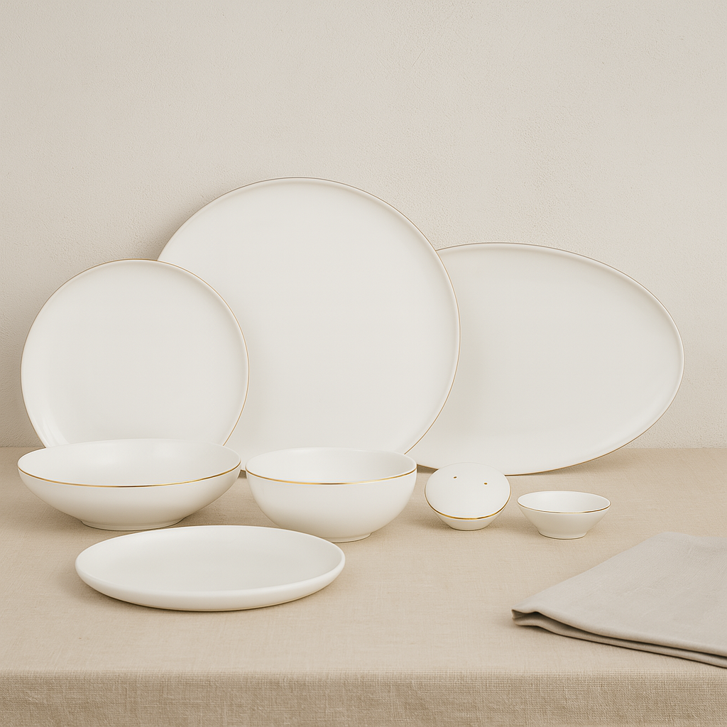 Besonderheit: Das zeitlose Design mit optionaler metallischer Akzentuierung verleiht Ihrer Tafel eine besondere Note – ideal für Festtage, Empfänge oder gehobene Alltagsküche. Ein stilvolles Ensemble für anspruchsvolle Genießer.