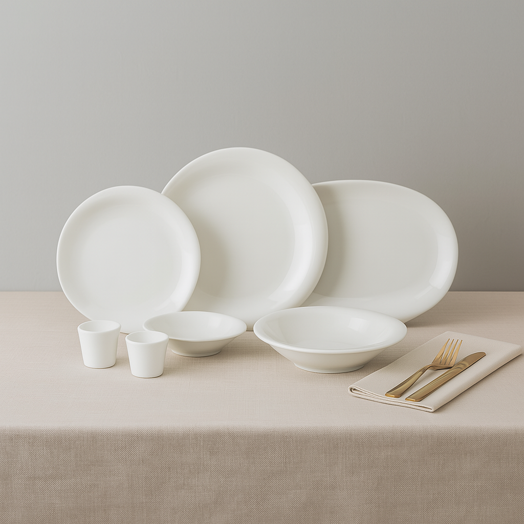 Bricard Geschirr-Set Clichy Tafelgeschirr, Porzellan, spülmaschinenfest 27-tlg. 6 Personen mikrowellengeeignet weiß