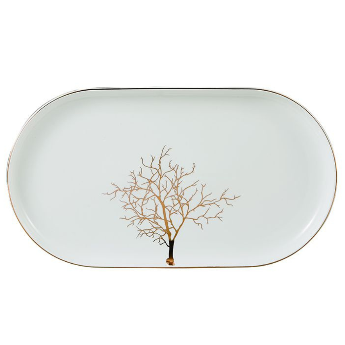 Farbe: Weiß mit goldfarbenem Baumdekor