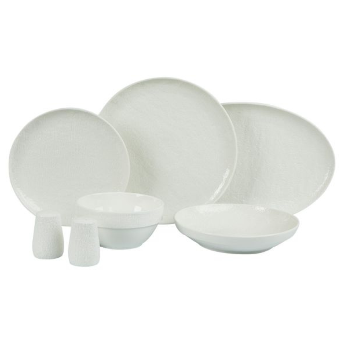 Das 27-teilige "Valance" Geschirrset von Bricard besticht durch seine moderne Eleganz und die besondere raue Oberflächenstruktur, die jedes Teil zu einem haptischen Erlebnis macht. Die zurückhaltende Farbgebung in edlem Weiß sorgt für eine stilvolle Präsentation Ihrer Speisen und passt sich vielseitig jedem Tischambiente an.