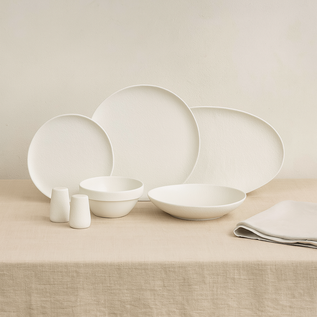 Besonderheit: Die raue Textur macht dieses Set zu einem echten Blickfang und bietet gleichzeitig eine moderne, griffige Haptik – ideal für Liebhaber zeitloser und funktionaler Tischkultur.
