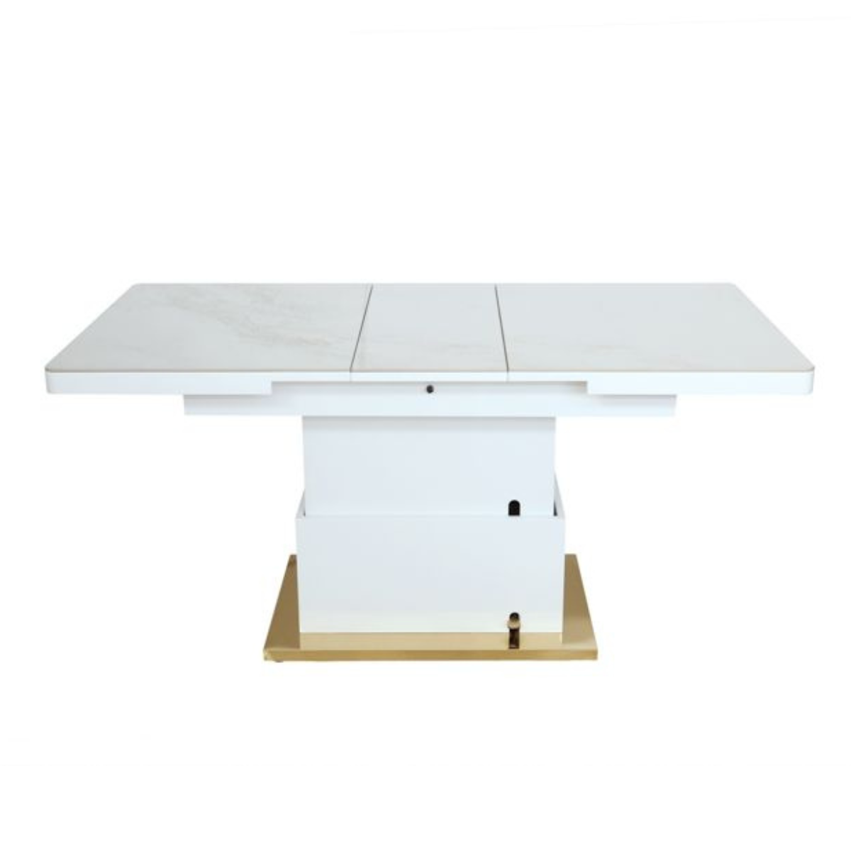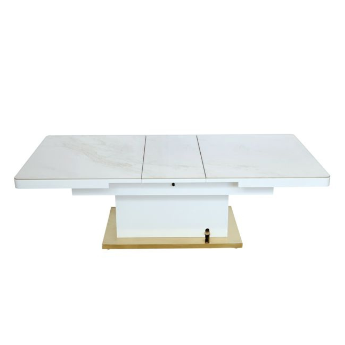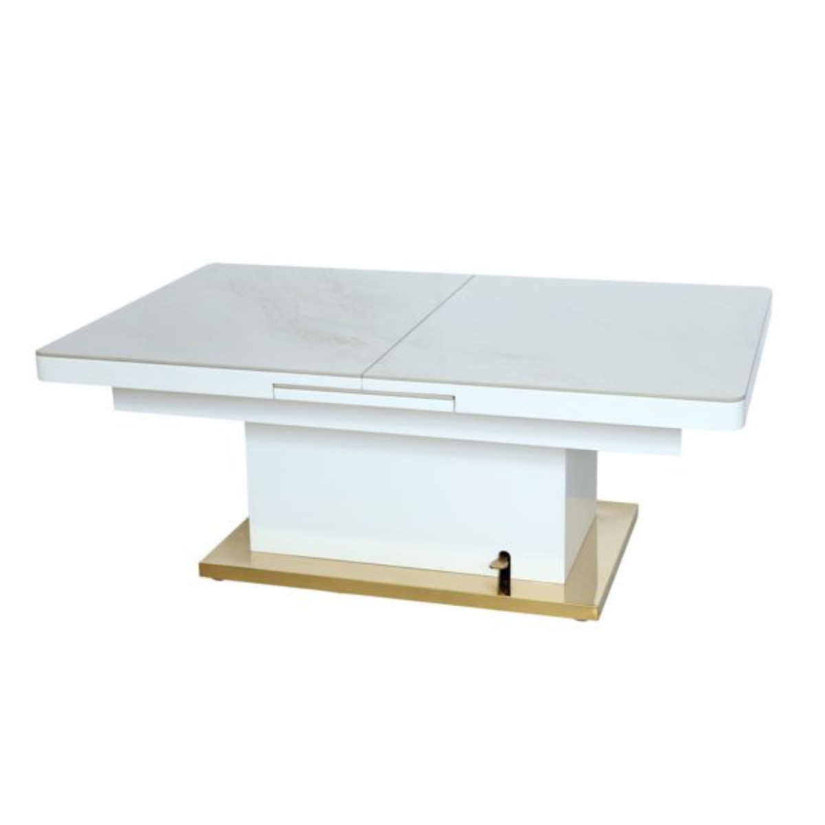 Couchtisch Fermo Weiß -Gold Tischplatte aus Keramik ausziehbar höhenverstellbar