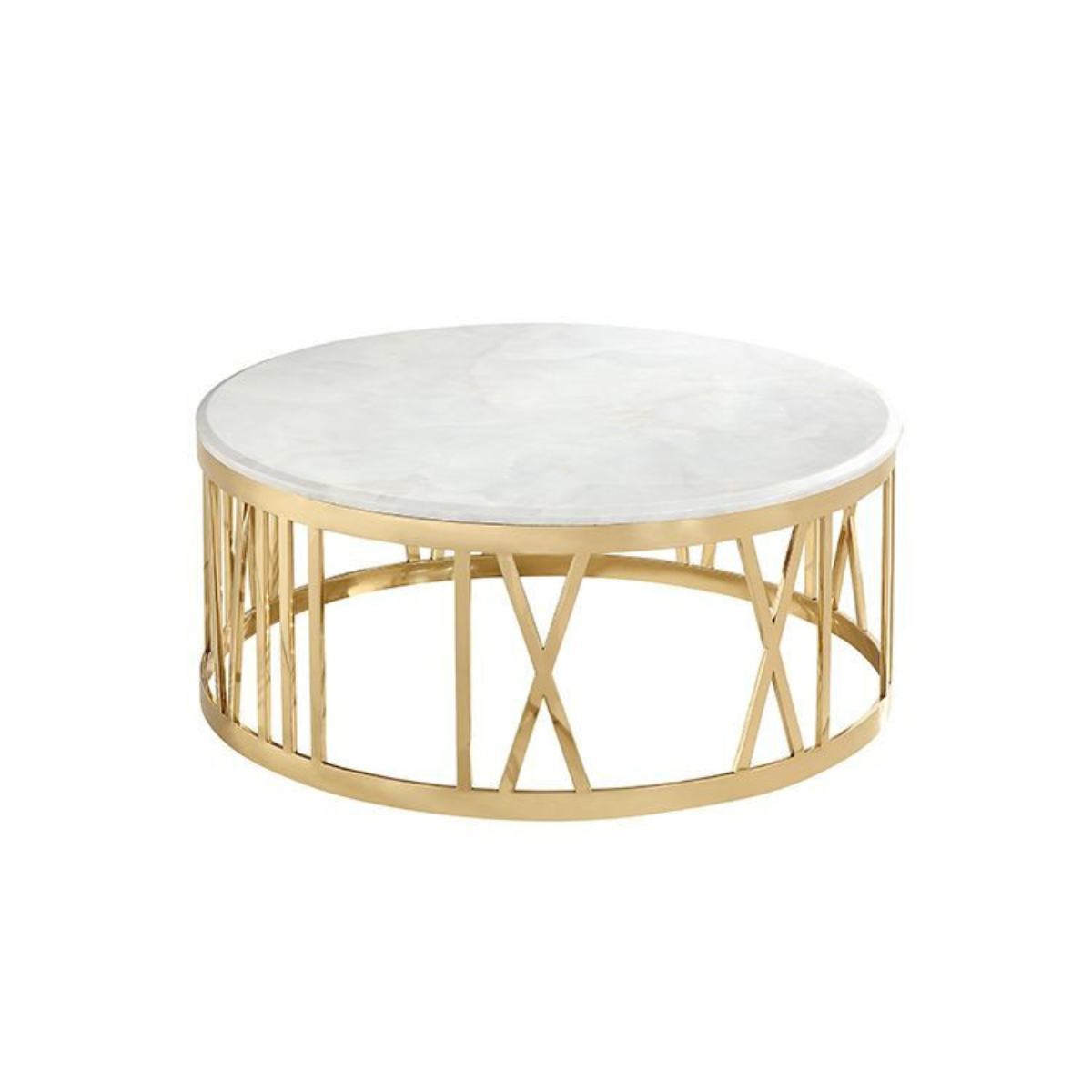 Ein Statement-Piece für dein Wohnzimmer: Dieser runde Couchtisch vereint luxuriöse Marmor-Optik mit modernem Metall-Design. Die feine Maserung der Tischplatte sorgt für einen eleganten Look, während das geometrisch gestaltete Metallgestell in glänzendem Silber eine edle Note setzt. Perfekt für stilbewusste Interiors mit einem Hauch Glamour.
