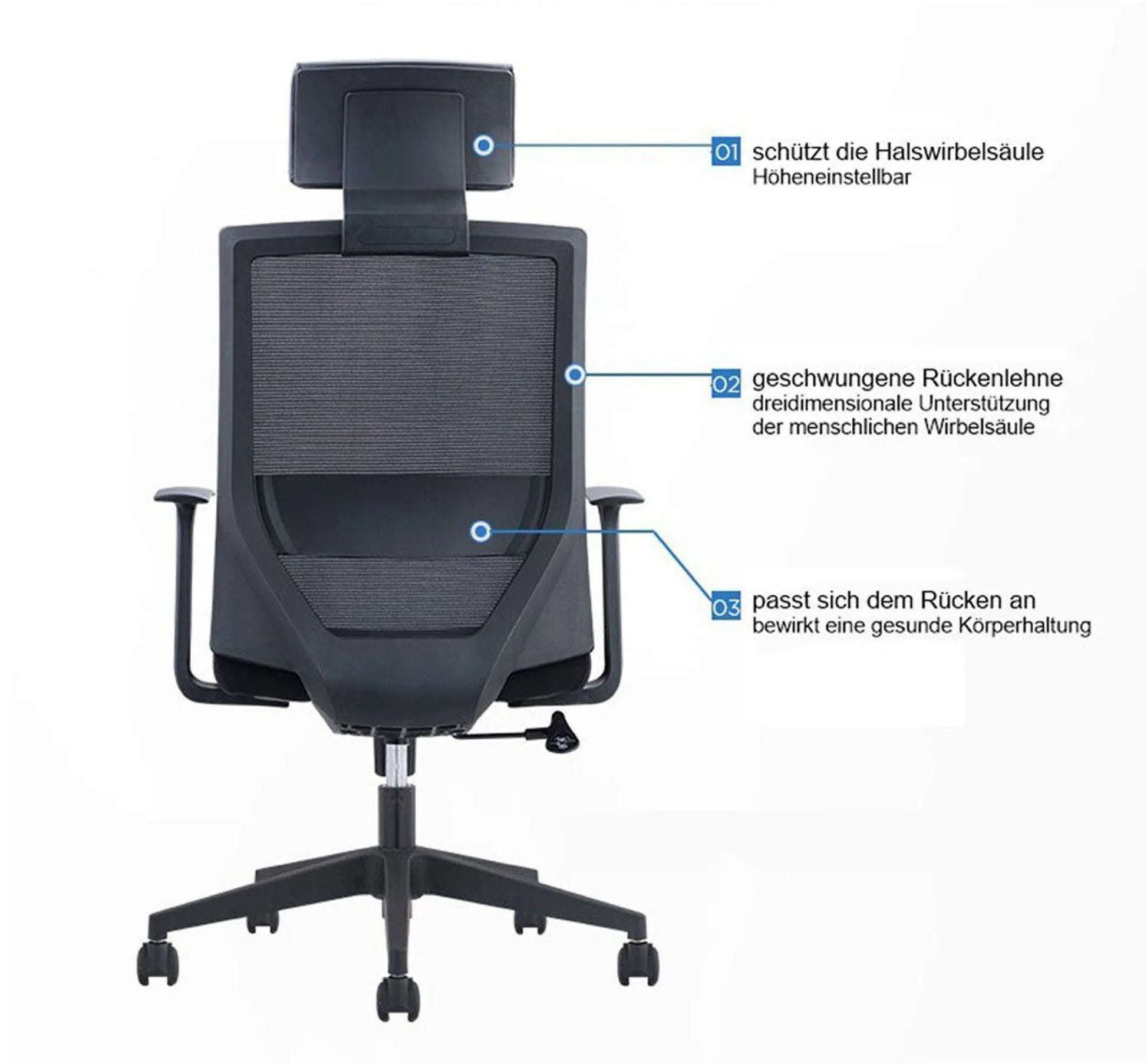 Gönnen Sie sich maximalen Sitzkomfort bei der Arbeit – mit diesem ergonomischen Schreibtischstuhl, der Design, Funktionalität und Gesundheit ideal vereint. Die atmungsaktive Mesh-Rückenlehne, die gepolsterte Sitzfläche, die verstellbare Kopfstütze, sowie eine integrierte Lendenwirbelstütze sorgen für eine entspannte Haltung – auch an langen Arbeitstagen.