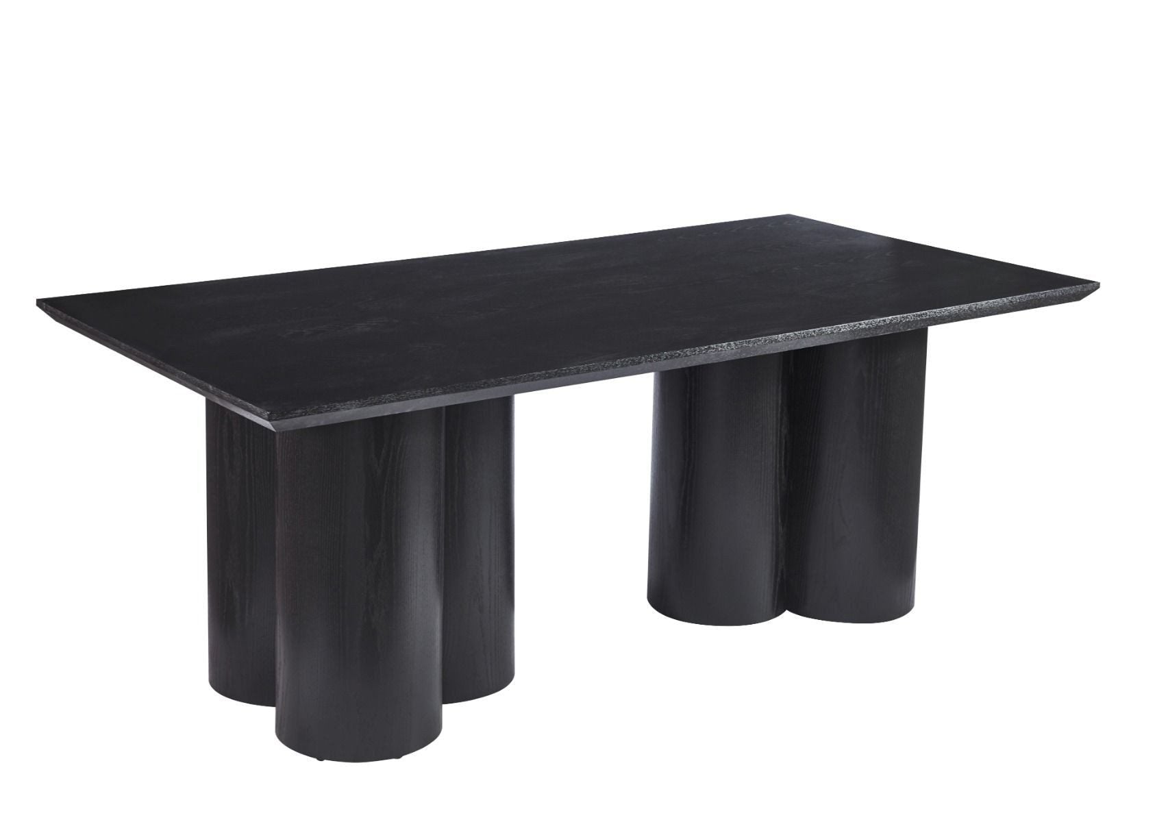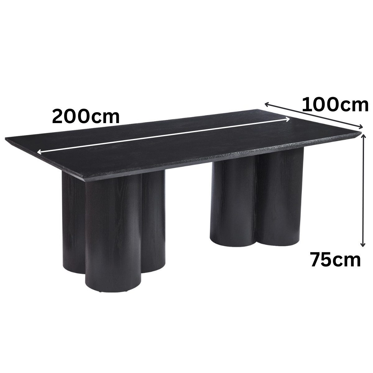 Der ENNA Esstisch vereint modernes Design mit markanter Eleganz. Mit seiner rechteckigen Form und der großzügigen Tischplatte aus MDF in tiefem Schwarz wird er zum stilvollen Mittelpunkt jedes Esszimmers. Die kräftigen, zylindrischen Tischbeine sorgen nicht nur für einen stabilen Stand, sondern verleihen dem Tisch auch eine unverwechselbare, architektonische Ausstrahlung.