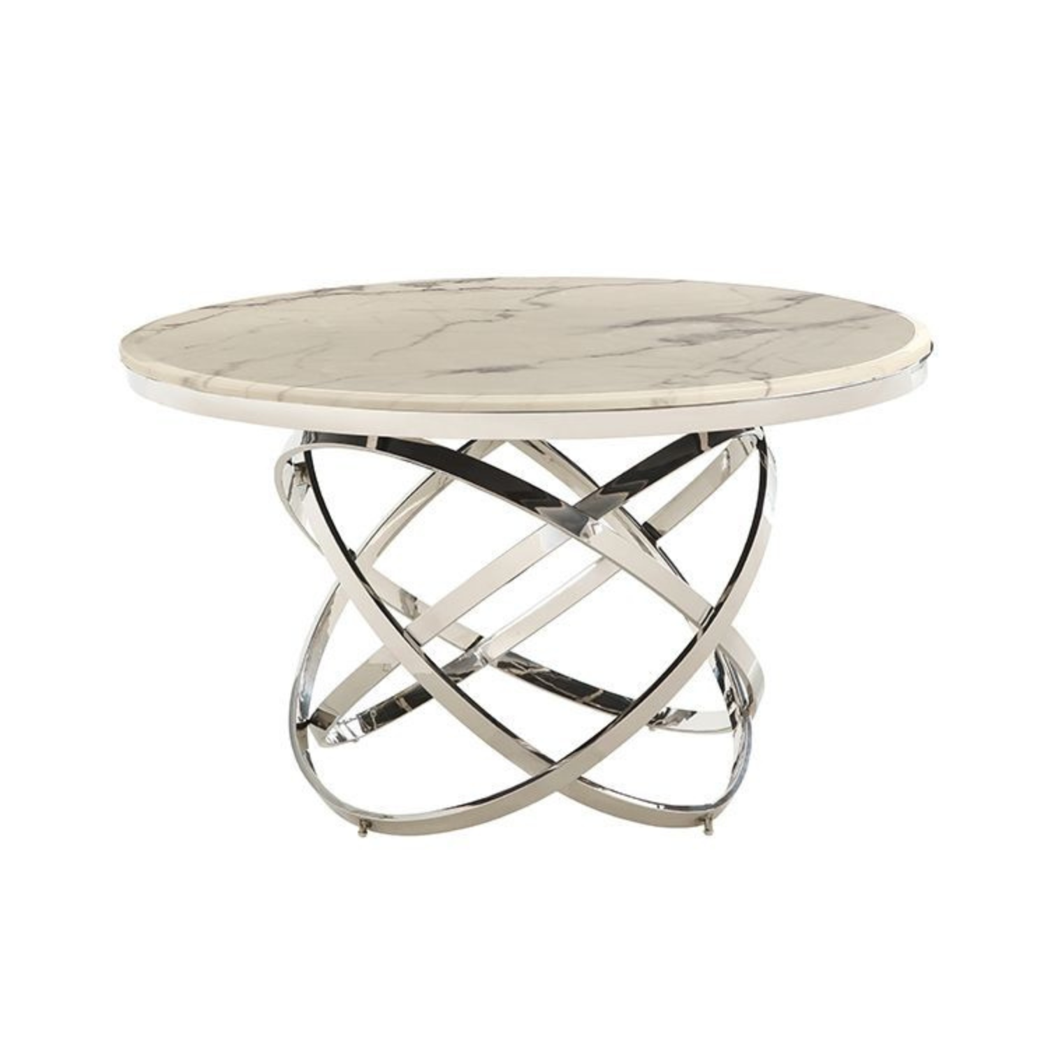 Esstisch Runder Esstisch mit Marmor-Optik und Edelstahlgestell 130 x 76 cm