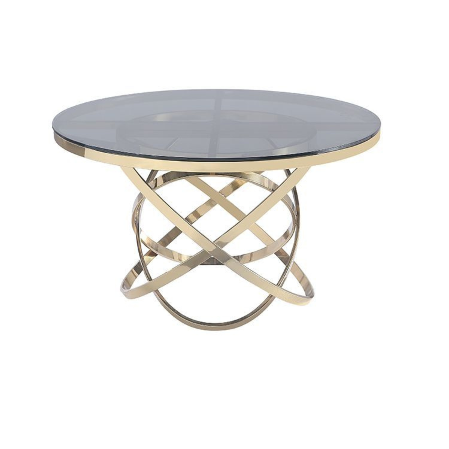 Mit einem Durchmesser von 130 cm bietet der Tisch bequem Platz für bis zu 6 Personen – ideal für gesellige Abende oder stilvolle Dinner.