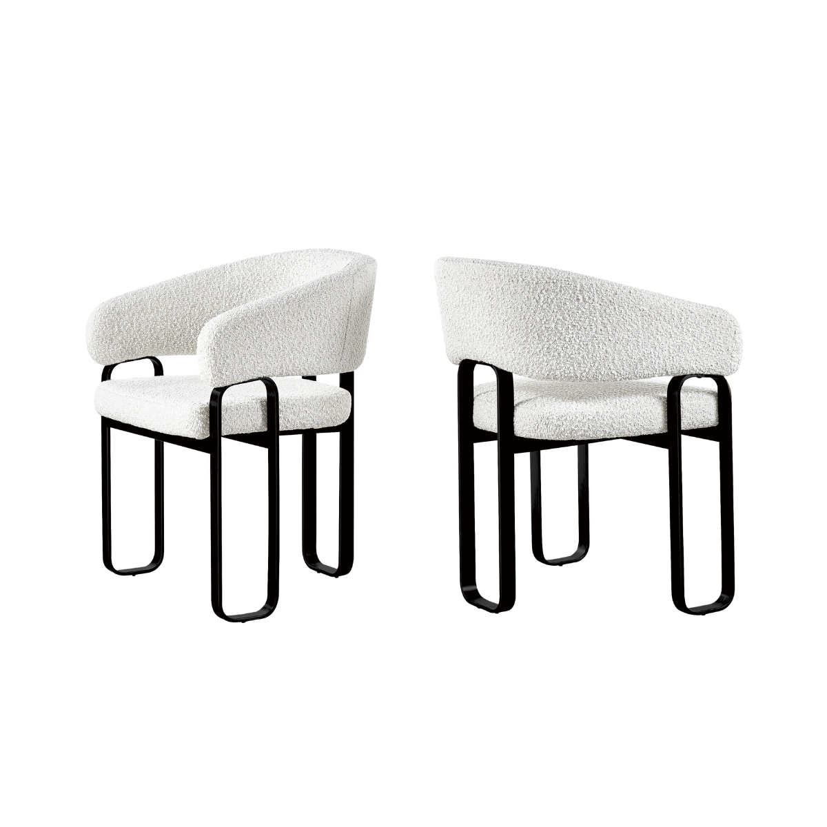 Dieser moderne Esszimmerstuhl verbindet außergewöhnliches Design mit höchstem Komfort. Die gepolsterte Sitz- und Rückenfläche ist mit einem weichen Stoffbezug versehen und sorgt für angenehmes Sitzen – ideal für lange Abende am Esstisch. Das markante Gestell aus robustem Metall mit abgerundeten Kanten verleiht dem Stuhl nicht nur Stabilität, sondern auch eine stilvolle, zeitgemäße Note.