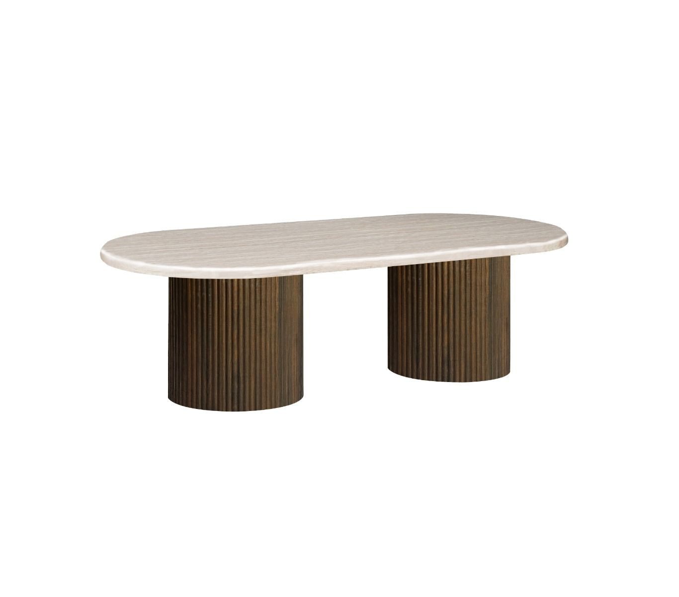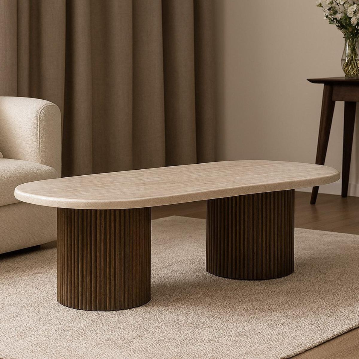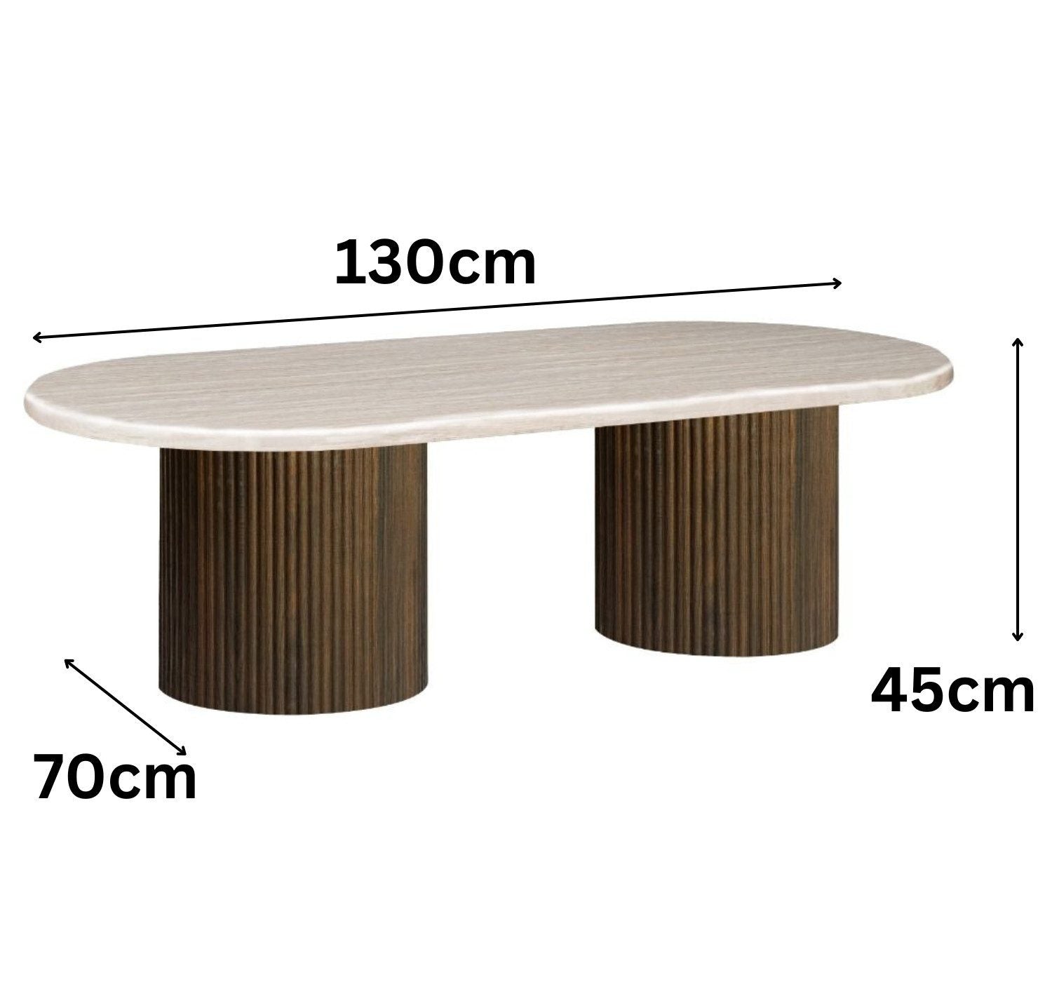 Moderner Couchtisch mit ovaler Travertin-Tischplatte – 130 x 70 x 45 cm braun