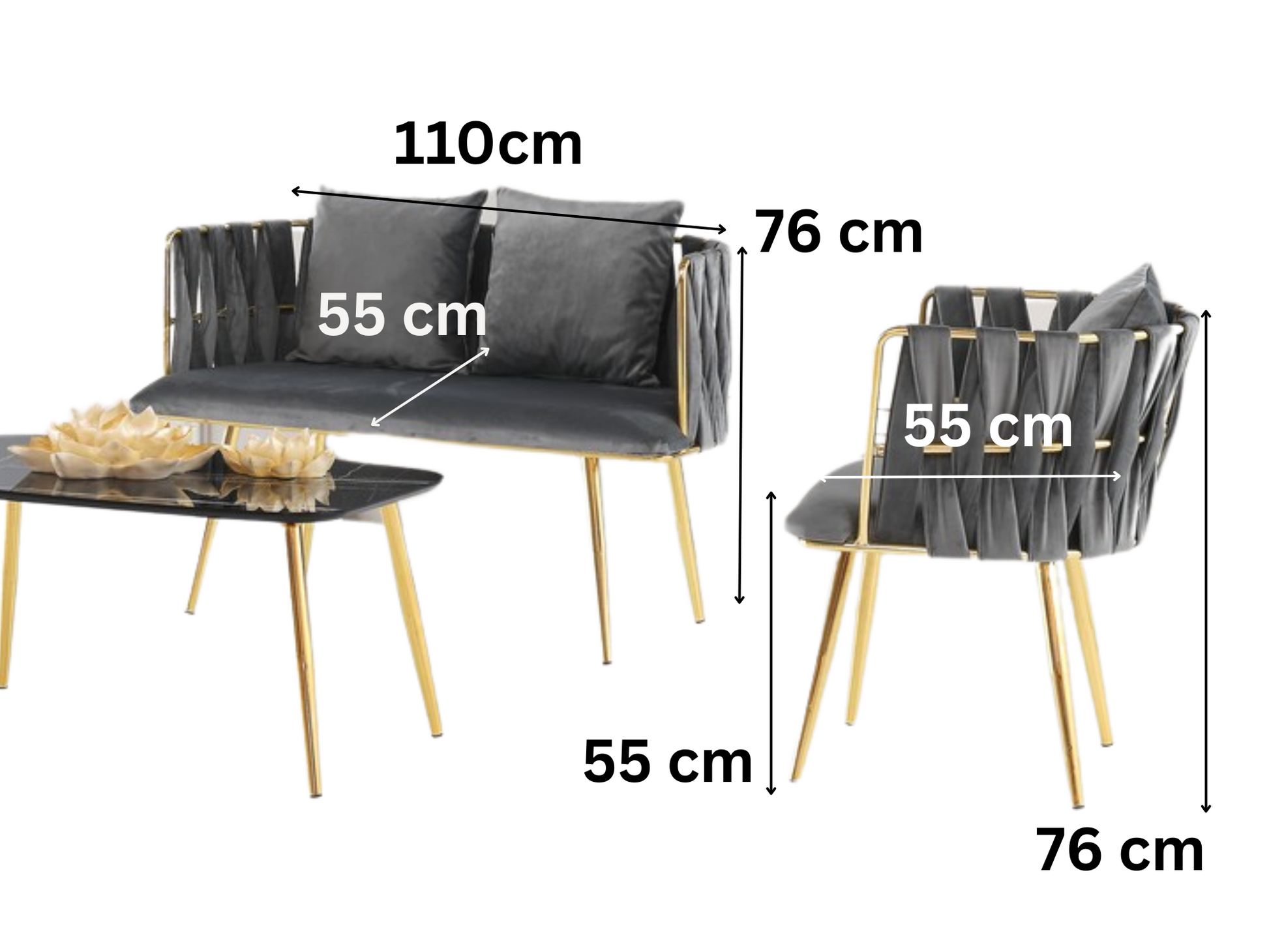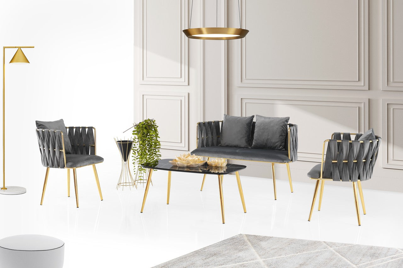 Dank der robusten Edelstahlgestelle, der pflegeleichten Oberflächen und der stilvollen Farbkombination aus edlem Gold und tiefem Grau ist die DIEGO Sitzgruppe nicht nur ein optisches Highlight, sondern auch ein langlebiger Begleiter für den Alltag.