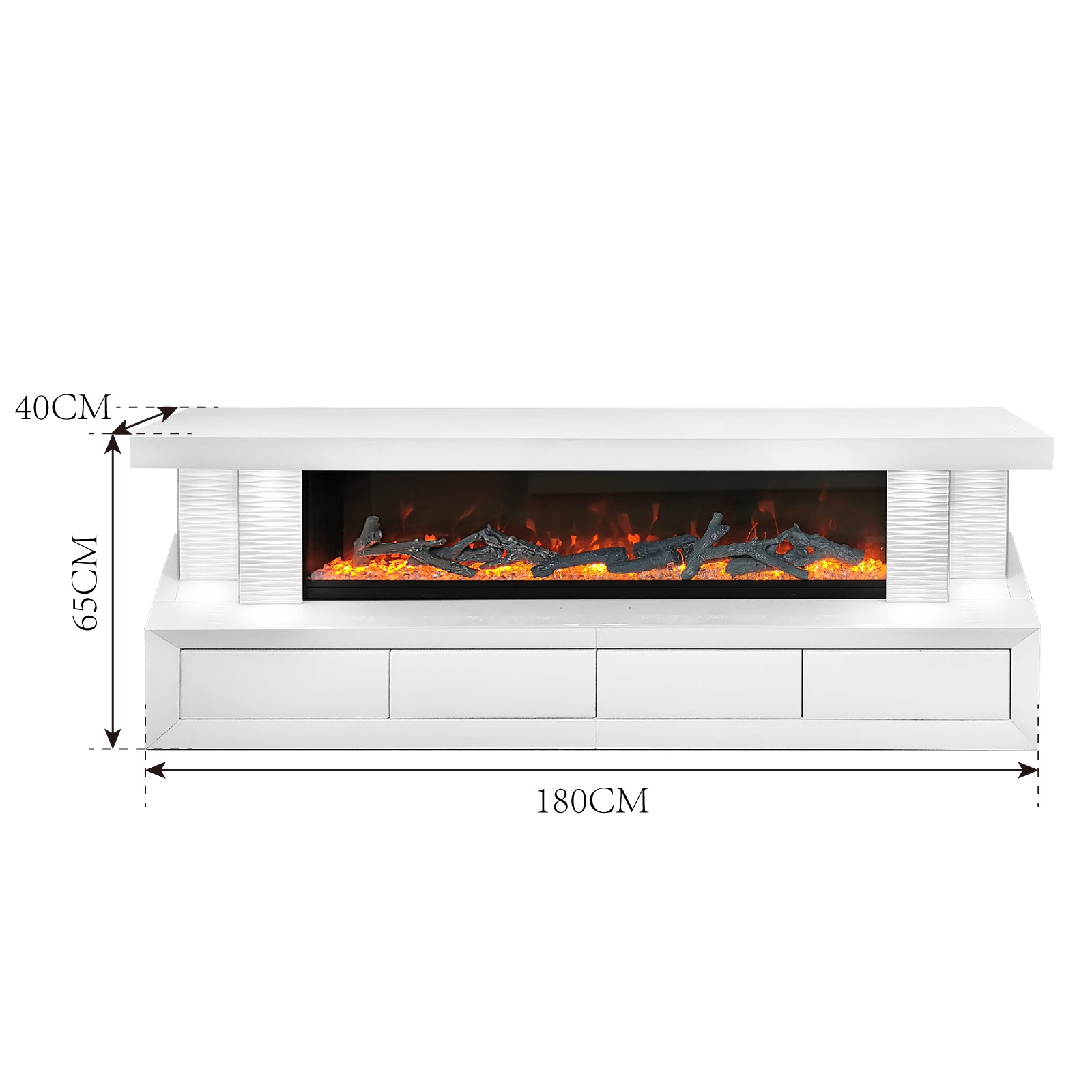 TV-Schrank Luxus Sideboard NOVA Kamin Funktion LED 180cm Weiss